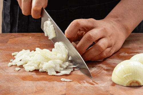 Мелко нарезать лук.