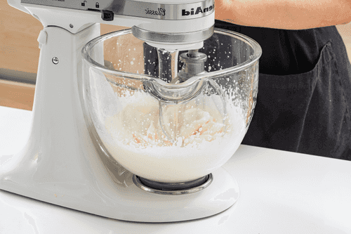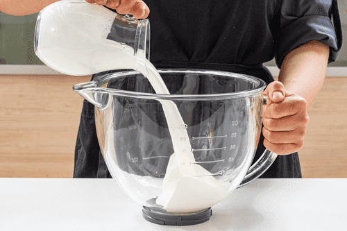 Перелить охлажденные сливки в чашу миксера.