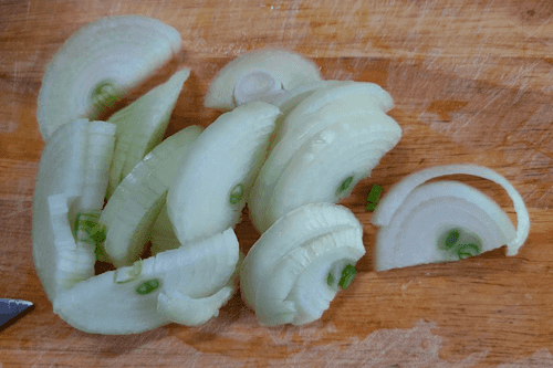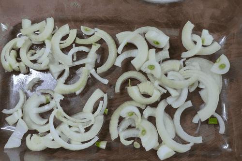 Лук нарезать полукольцами.