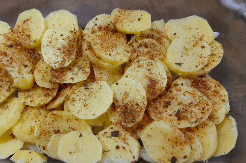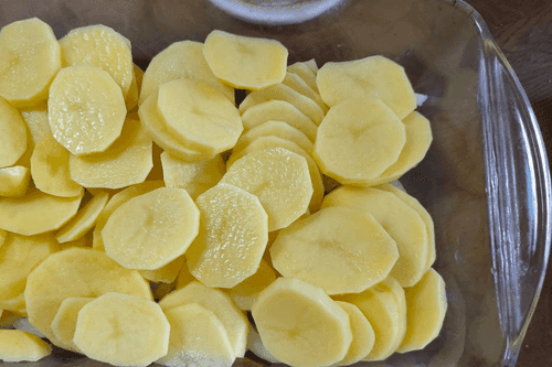 Выложить картофель сверху лука.