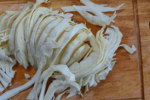 Капусту нарезать соломкой.