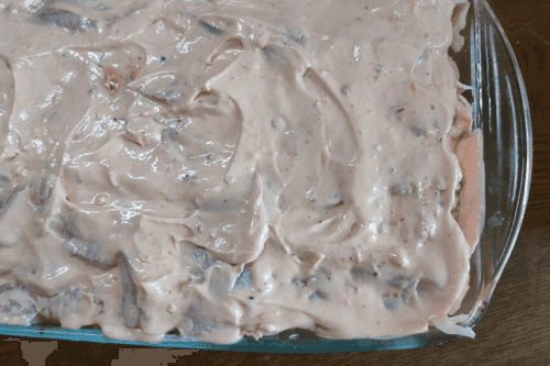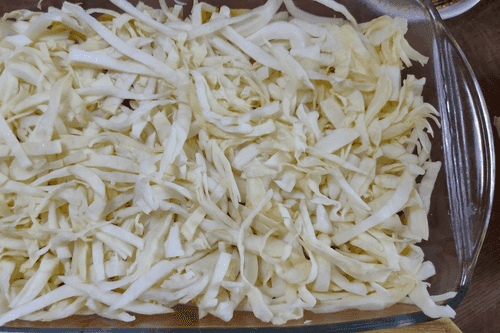 Выложить на дно формы для запекания.