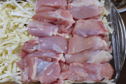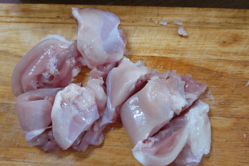 Курицу нарезать небольшими кусочками.