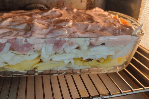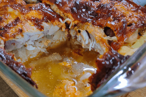 Овощная запеканка с курицей – это уютное блюдо русской кухни, которое объединяет нежность куриного мяса с мягкостью картофеля и свежестью капусты. Этот рецепт берет свои корни из традиционных деревенских блюд, где хозяйки использовали доступные и простые ингредиенты для создания питательных и сытных угощений. Запеканка пропитывается ароматами специй, а сливочно-томатный соус придает ей насыщенный вкус и нежную текстуру. При запекании все компоненты соединяются, образуя аппетитную корочку, а внутри остается сочность. Это блюдо идеально подходит для семейного ужина, когда хочется чего-то домашнего и согревающего. Подают запеканку порционно, дополняя свежей зеленью или легким салатом, что делает ее еще более гармоничной и вкусной.