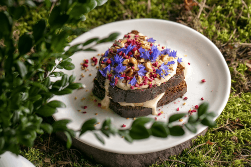 Украсить сублимированной малиной, кунжутом и фундуком. Подавать.
