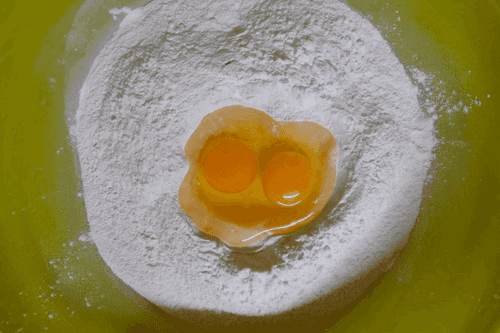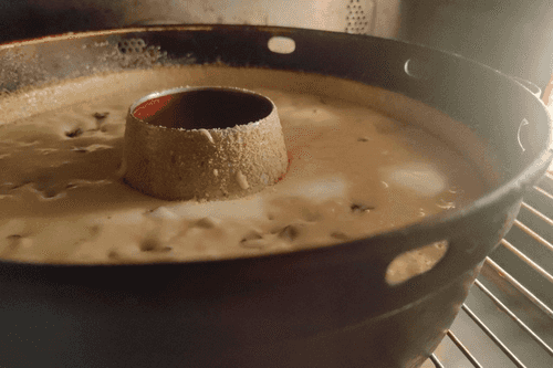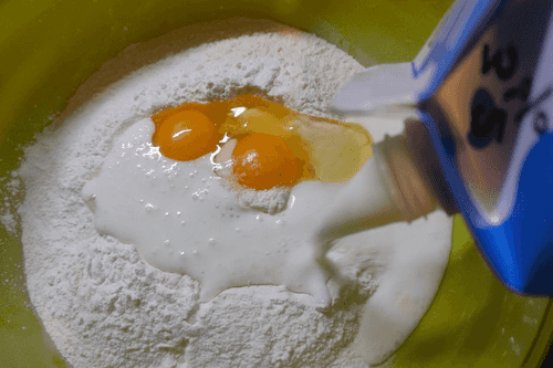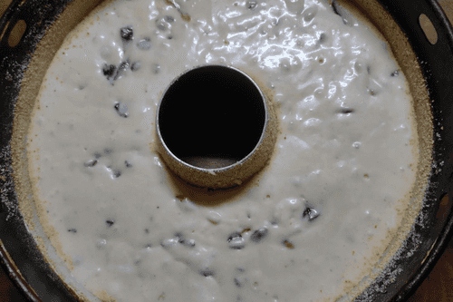 Постучать слегка формой по столу, чтобы равномерно распределить массу.