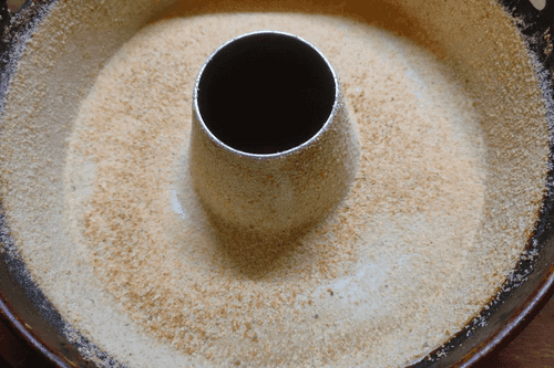 Форму для запекания смазать растительным маслом и добавить панировочные сухари.