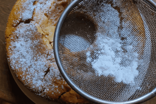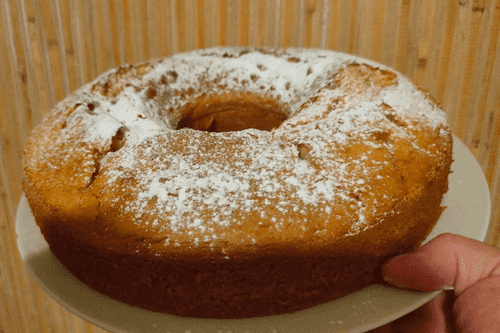 Переложить его на тарелку, посыпать сахарной пудрой.