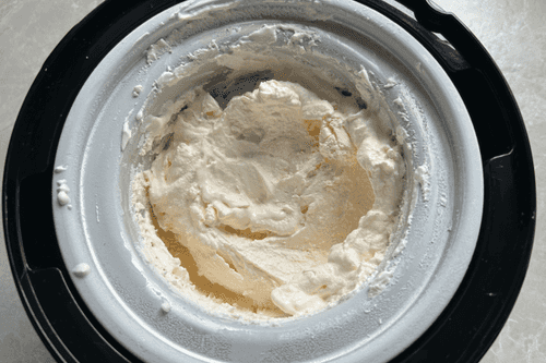Замораживать в морозилке в течение 3 часов, каждый час перемешивая. Если есть мороженица, то замораживать там в течение 30 минут.