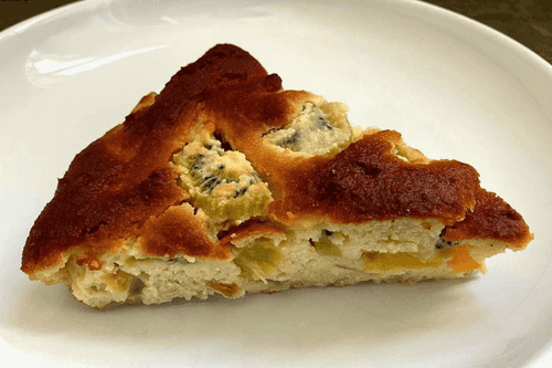 Пирог с персиками и грушами — это нежное и ароматное угощение, которое радует насыщенным фруктовым вкусом и воздушной текстурой теста. Вдохновленный русскими традициями, этот пирог воплощает в себе гармонию спелых, сладких фруктов и легкости бисквитного теста. Груши добавляют сочность и мягкость, а персики привносят яркий, солнечный аромат. Дополняют композицию экзотические киви, придавая пирогу легкую кислинку. Подается он как утреннее лакомство с чаем или в качестве элегантного десерта к семейному ужину. Этот пирог — не просто выпечка, а настоящий праздничный символ теплоты и уюта, объединяющий близких за одним столом.