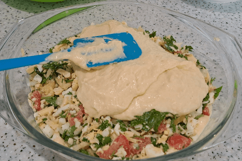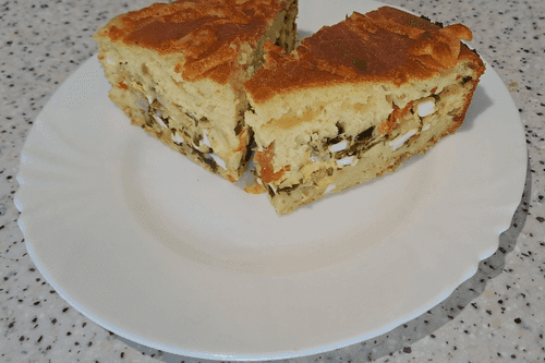 Наливной пирог на кефире с яйцом, сыром и зеленью