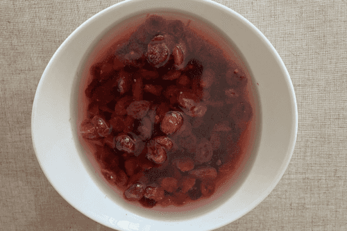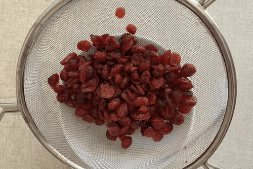Клюкву откинуть на дуршлаг и оставить стекать.