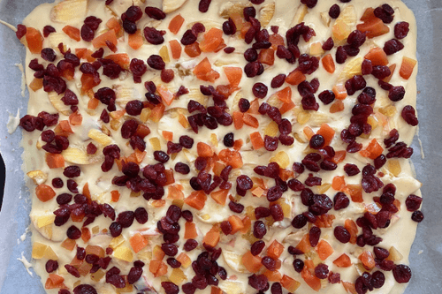 Пирог с персиками и вяленой клюквой — это нежное сочетание сладости, кислоты и сочности фруктов, заключенное в мягкое тесто. Этот рецепт вобрал в себя традиции русской кухни, где всегда ценили натуральные ингредиенты и гармоничные вкусовые сочетания. Персики придают пирогу нежность и сочность, а вяленая клюква добавляет легкую кислинку и насыщенность вкуса. Интересным дополнением является папайя, которая делает текстуру более воздушной и многослойной. Такой пирог идеален для семейного чаепития, уютных вечеров или праздничных застолий. Его аромат пробуждает воспоминания о теплых летних днях и радует даже самых взыскательных гурманов. Подавать лучше слегка охлажденным, чтобы все вкусовые оттенки раскрылись в полной мере.
