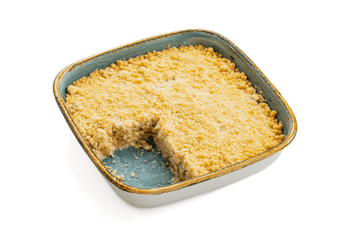 На тесто выложить капустную начинку, сверху равномерно распределить оставшуюся крошку. Отправить пирог в разогретую до 180 градусов духовку на 40 минут.