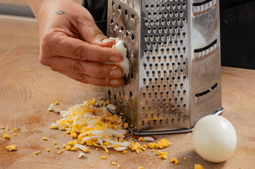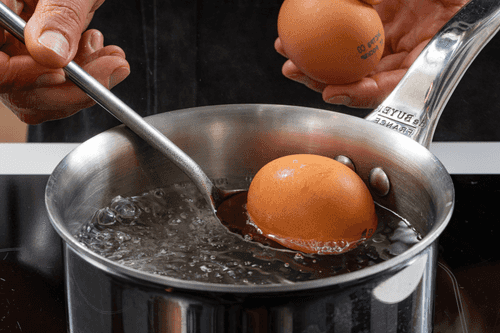 Яйца выложить в кипящую воду и варить 11 минут. Затем охладить под струей воды.