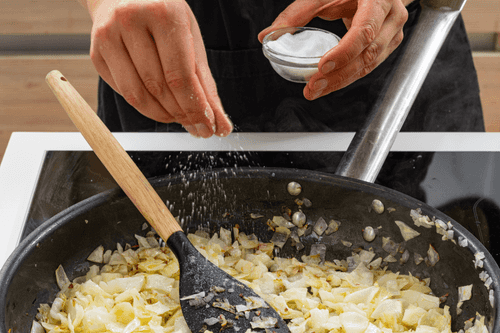 Добавить к луку капусту, немного посолить и тушить все вместе, периодически помешивая, до мягкости капусты.