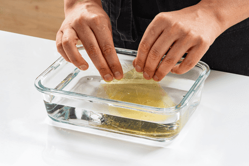 Желатин замочить в холодной воде.