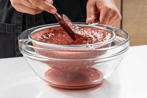 Протереть получившуюся смесь через мелкое сито, чтобы избавиться от семян и кожи.