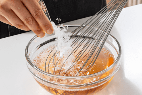 Вмешать в винно-желатиновую смесь оставшуюся сахарную пудру и лимонный сок, перемешать.