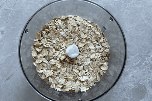 Высыпать овсяные хлопья в чашу блендера.