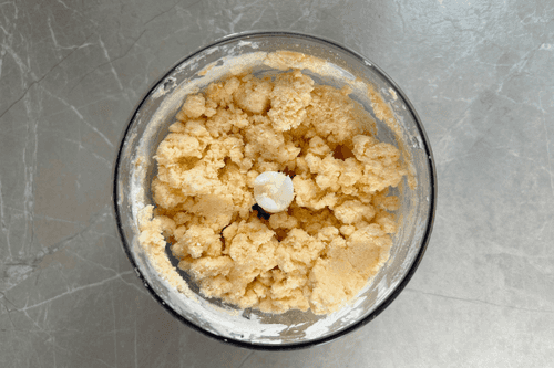 В чашу блендера высыпать муку, масло, воду и 2 желтка.
