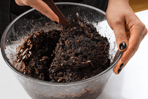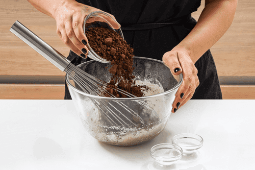 Добавить муку, какао, соду и соль. Перемешать до однородной массы.