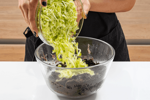 Вмешать кабачки в тесто и дать ему постоять 5 минут.