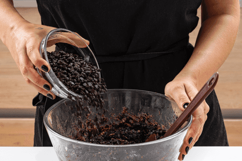 Добавить в тесто шоколад и снова перемешать.