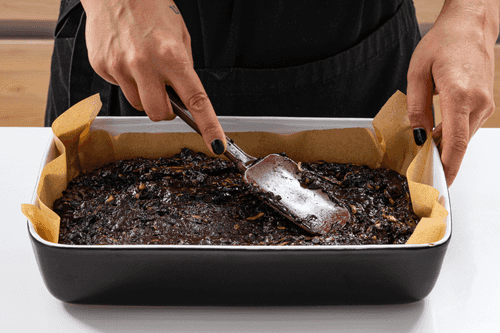 Выложить тесто в форму и отправить в духовку на 25–35 минут. Проверить брауни на готовность зубочисткой.