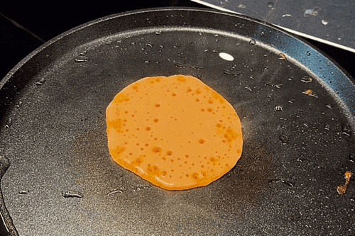 Хорошо разогреть сковороду на среднем огне. Выливать по 2 столовые ложки теста, формируя небольшие блинчики. Жарить примерно по 1 минуте, до появления пузырьков на поверхности. Перевернуть и жарить еще 1 минуту.