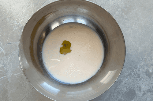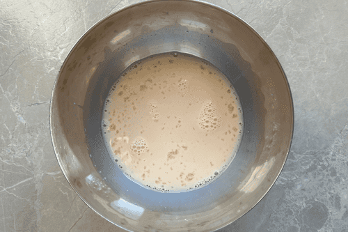 В миску вылить молоко, добавить белок, сахар, дрожжи.