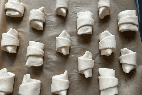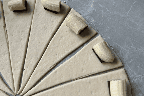 Разложить кусочки шоколада и банана, свернуть в рулетики.