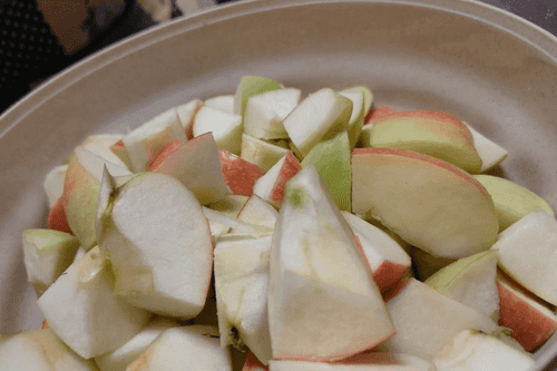 Нарезать произвольно, среднего размера кусочками, вынув сердцевину.