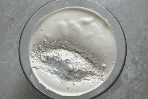 Взбить до пышности и всыпать сахар. Взбивать до устойчивых пиков.