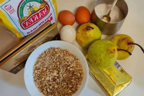 Пирог с грушами, орехами и шоколадом