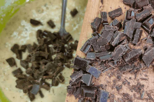 Добавить шоколад к тесту.