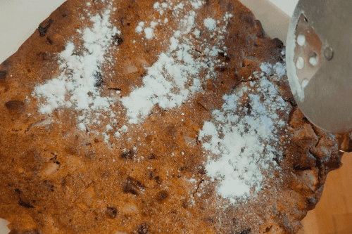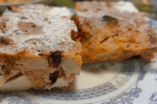 Готовый пирог вынуть, остудить и посыпать сахарной пудрой.