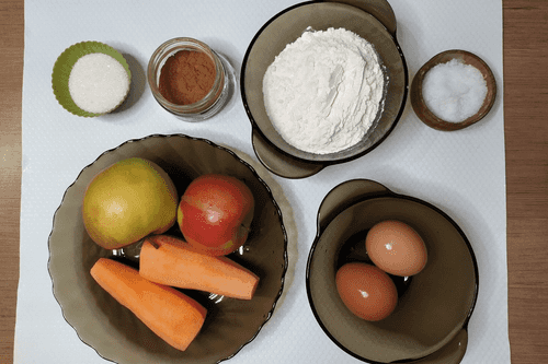 В яблочно-морковную смесь вбить 2 яйца, добавить корицу и сахар. Количество сахара можно регулировать в зависимости от сладости яблок. Перемешать.
