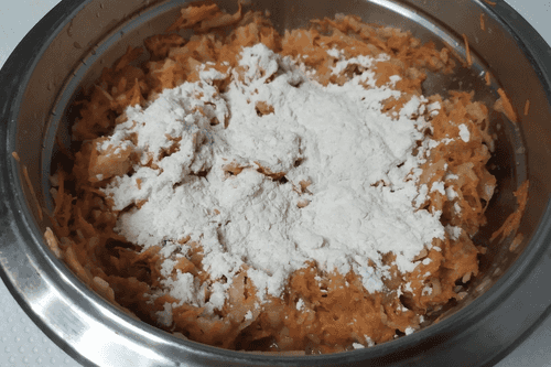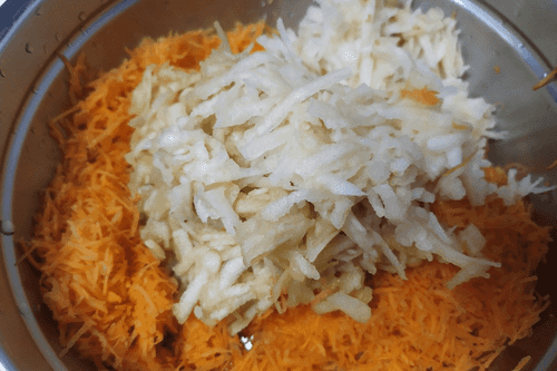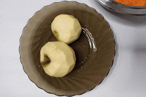 Натереть яблоки на крупной терке и добавить к морковной массе.