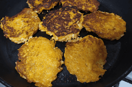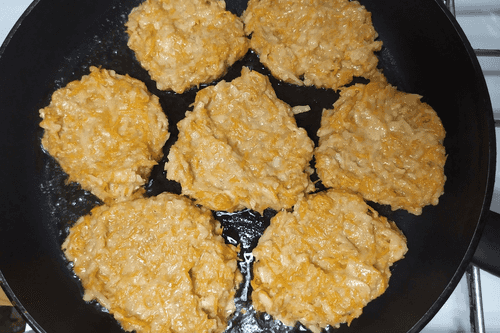Пожарить оладьи с двух сторон до образования золотистой корочки.