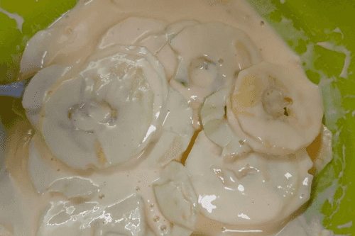 Как следует обвалять их в массе, каждый слайс со всех сторон.