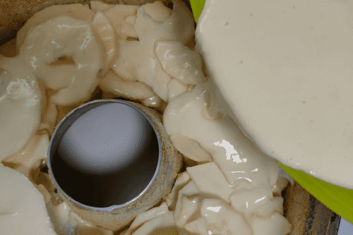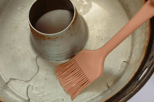 В форму налить масло и размазать его кисточкой по всей поверхности.