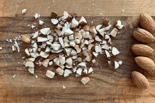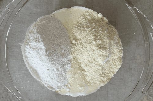 Яйца взбить с сахаром, добавить рисовую и миндальную муку.
