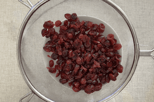 Сушеную клюкву залить кипятком и оставить на 15 минут.