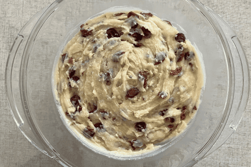 Добавить сливочное масло в тесто и тщательно перемешать.