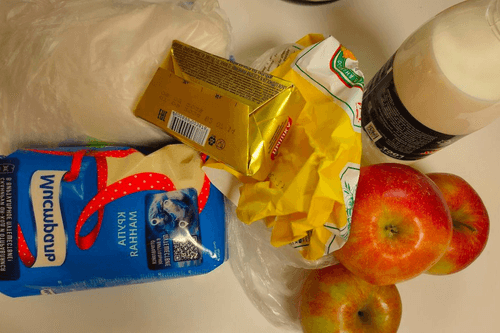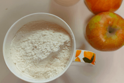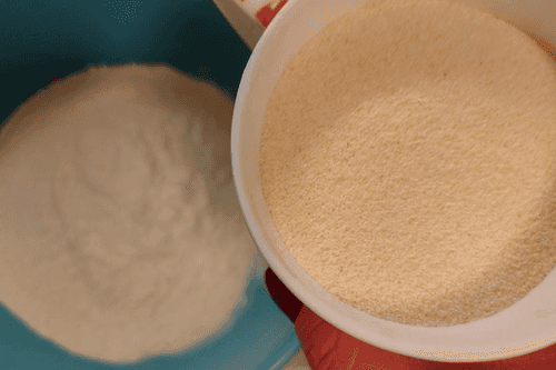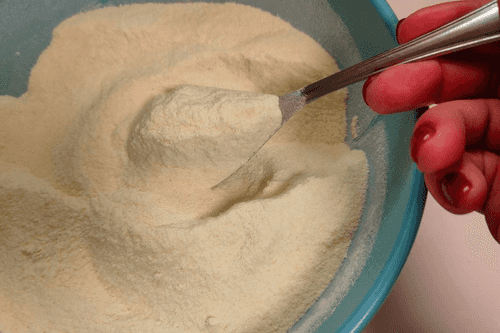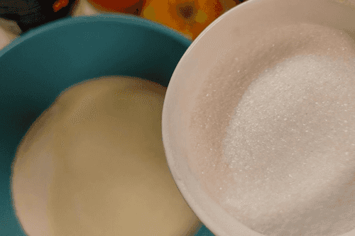 Затем тем же стаканом отмерить сахар, всыпать его к муке.