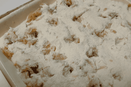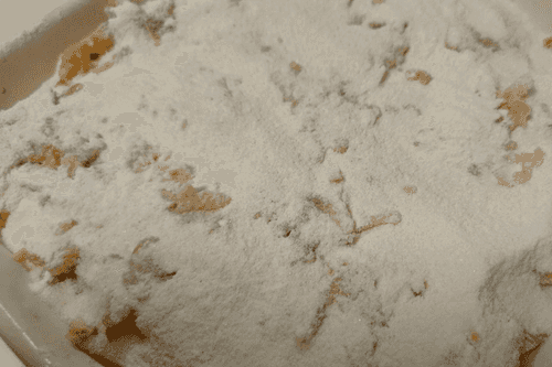 Далее на дно формы насыпать слой сухой смеси (примерно треть).
