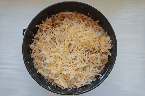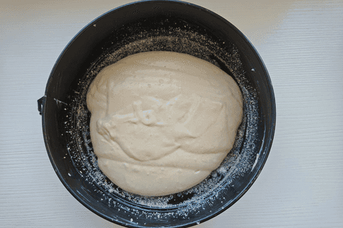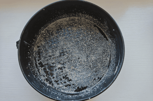 Форму для запекания со съемными бортами смазать сливочным маслом и присыпать панировочными сухарями.