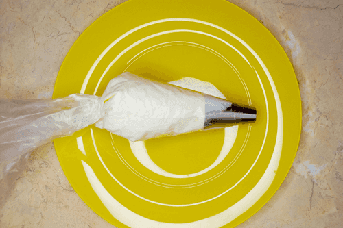 Переложить крем в кондитерский пакет с насадкой «ровная трубочка».