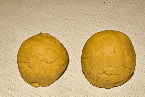 Разделить тесто в соотношении 2/3 и 1/3. Меньший кусок убрать в морозилку на 1 час.